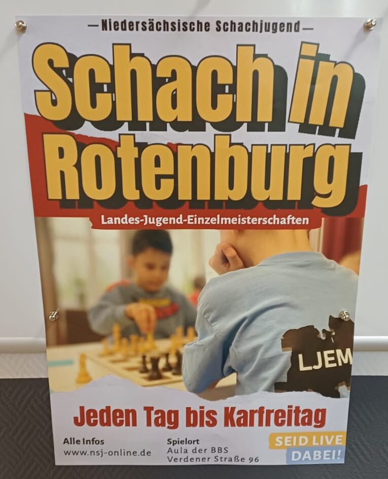 Vom 28. März bis 3. April fanden in Rotenburg (Wümme) die Landes-Jugend-Einzelmeisterschaften statt. Als Qualifizierter in der U14 war Felix dabei, außerdem spielte Enna im U25 Open mit. Während klar war, dass Felix als Vorletzter in der sehr starken Setzliste um jeden Punkt hart kämpfen muss, startete Enna noch knapp in der oberen Hälfte des Teilnehmerfeldes. Neben den beiden war noch Dirk als Trainer dabei und Marius als Schiedsrichter der U10 und U12. Gespielt wurden jeweils 9 Runden.