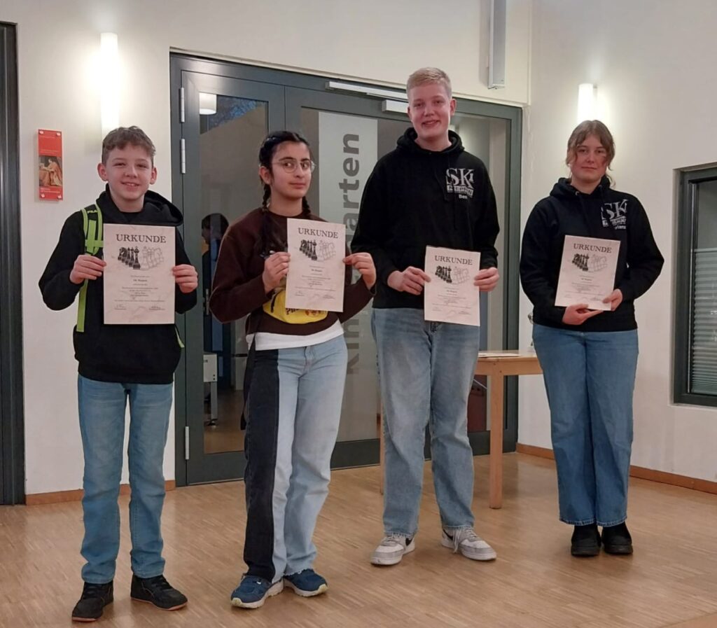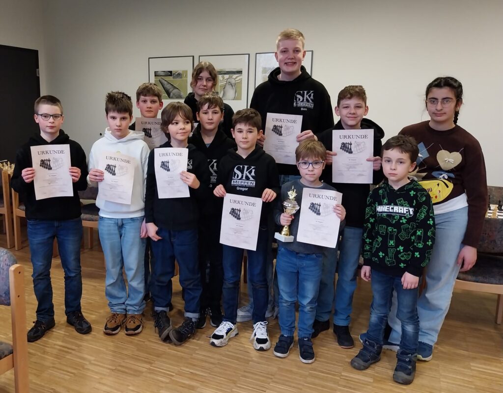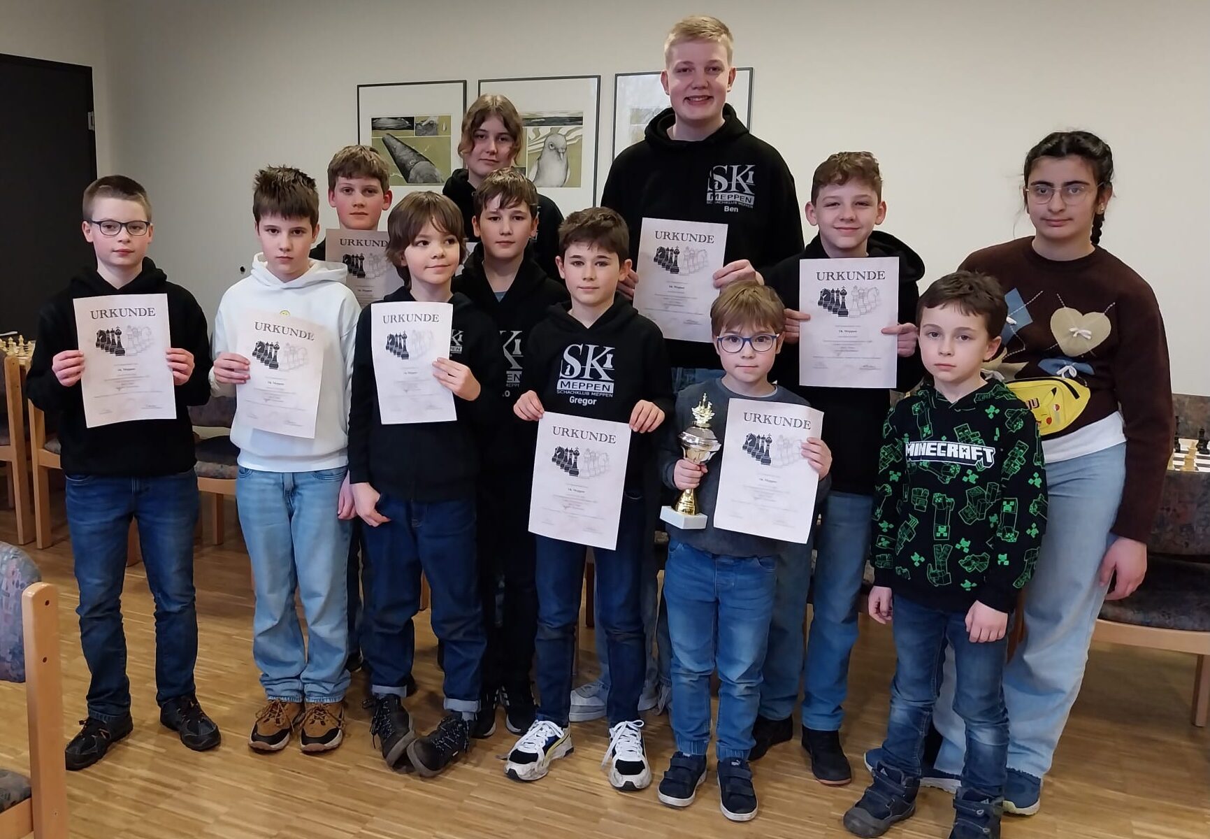 Damit war klar: die U10 war punktgleich und ungeschlagen hinter Nordhorn U12 Zweiter der gemeinsamen Wertung und souverän Bezirksmannschaftsmeister U10. Titel erfolgreich verteidigt!!!
