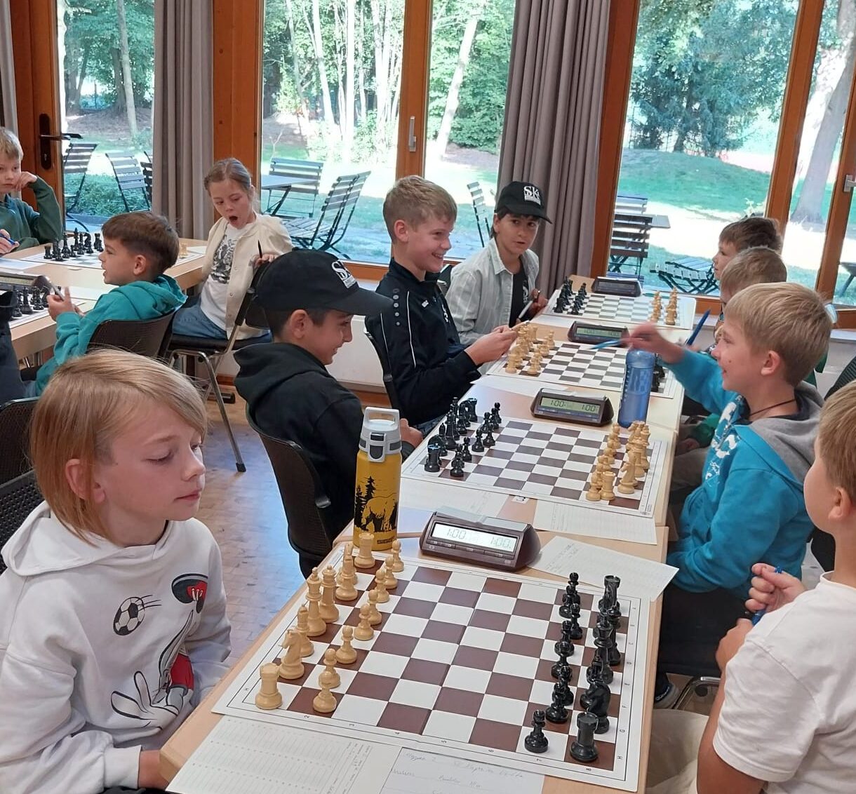 Vom 23. bis 24.08.2025 nahmen wir mit zwei Mannschaften an den diesjährigen Landes-Mannschaftsmeisterschaften der Altersklasse U10 in Lingen teil. Die erste Mannschaft bildeten Myron, Marko, Jovan, Gregor und Eric als mitspielender Ersatzspieler. Unsere zweite Mannschaft, Muslim, Nico, Adam und Till musste ohne Ersatzspieler auskommen, da Dirk kurzfristig erkrankte. Insgesamt nahmen 14 Teams aus ganz Niedersachsen an diesem hervorragend organisierten Turnier teil. Gespielt wurden 7 Runden nach dem Schweizer System mit einer Bedenkzeit von 60 Minuten pro Spieler.